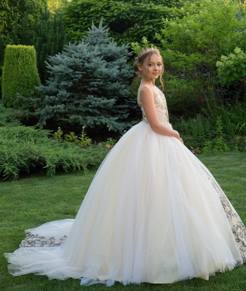 Crafted for girls aged 3–10, this gown offers couture-level craftsmanship, lightweight comfort, and unforgettable style.